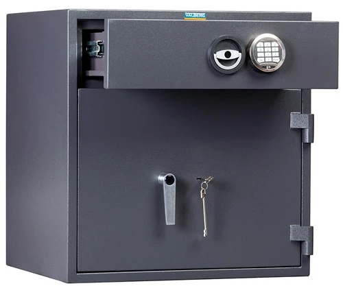 — В верхней части корпуса установлен выдвижной лоток 104х517х124 мм, через который производится закладка денег в сейф (открытие двери не требуется).