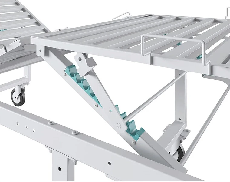 - Главная особенность модели КМ-03 в сравнении с обычными медицинскими кроватями – это наличие трёх секций с изменяемым углом наклона. Такое конструктивное решение позволяет не только подстроить ложе кровати под положение пациента и обеспечить ему наиболее комфортные условия, но и ощутимо облегчить работу медперсонала.