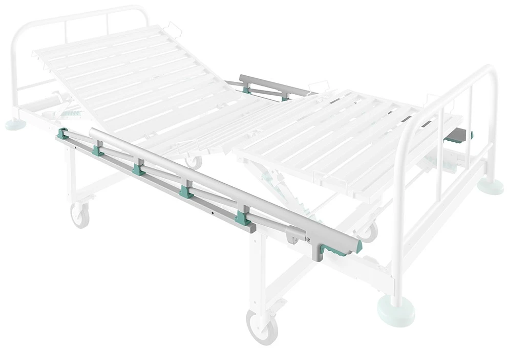 - Главная особенность модели КМ-05 в сравнении с обычными медицинскими кроватями – это наличие трёх секций с изменяемым углом наклона. Такое конструктивное решение позволяет не только подстроить ложе кровати под положение пациента и обеспечить ему наиболее комфортные условия, но и ощутимо облегчить работу медперсонала.