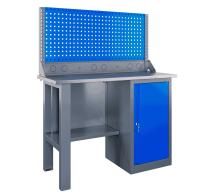 - Элегантное сочетание пыльно-серого и небесно-синего цветов придаёт верстаку привлекательный вид – это весьма существенно при установке в домашней мастерской или учебном заведении.