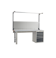 Помимо высокой грузоподъёмности – до трёх тонн, что является практически пределом для рабочих столов верстачного типа, – достоинством серии ВС является модульная конфигурация: рабочее место собирается из элементов (столешница, тумба или две, экраны с перфорацией, осветительный комплект и так далее), и поэтому вы всегда можете скомпоновать его в полном соответствии с нюансами вашего рабочего процесса.